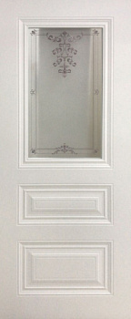 Дверь межкомнатная "Моцарт" ДО Эмаль RAL 9010 + патина серебро (фото, белое, рис. серебро) (Космос) |